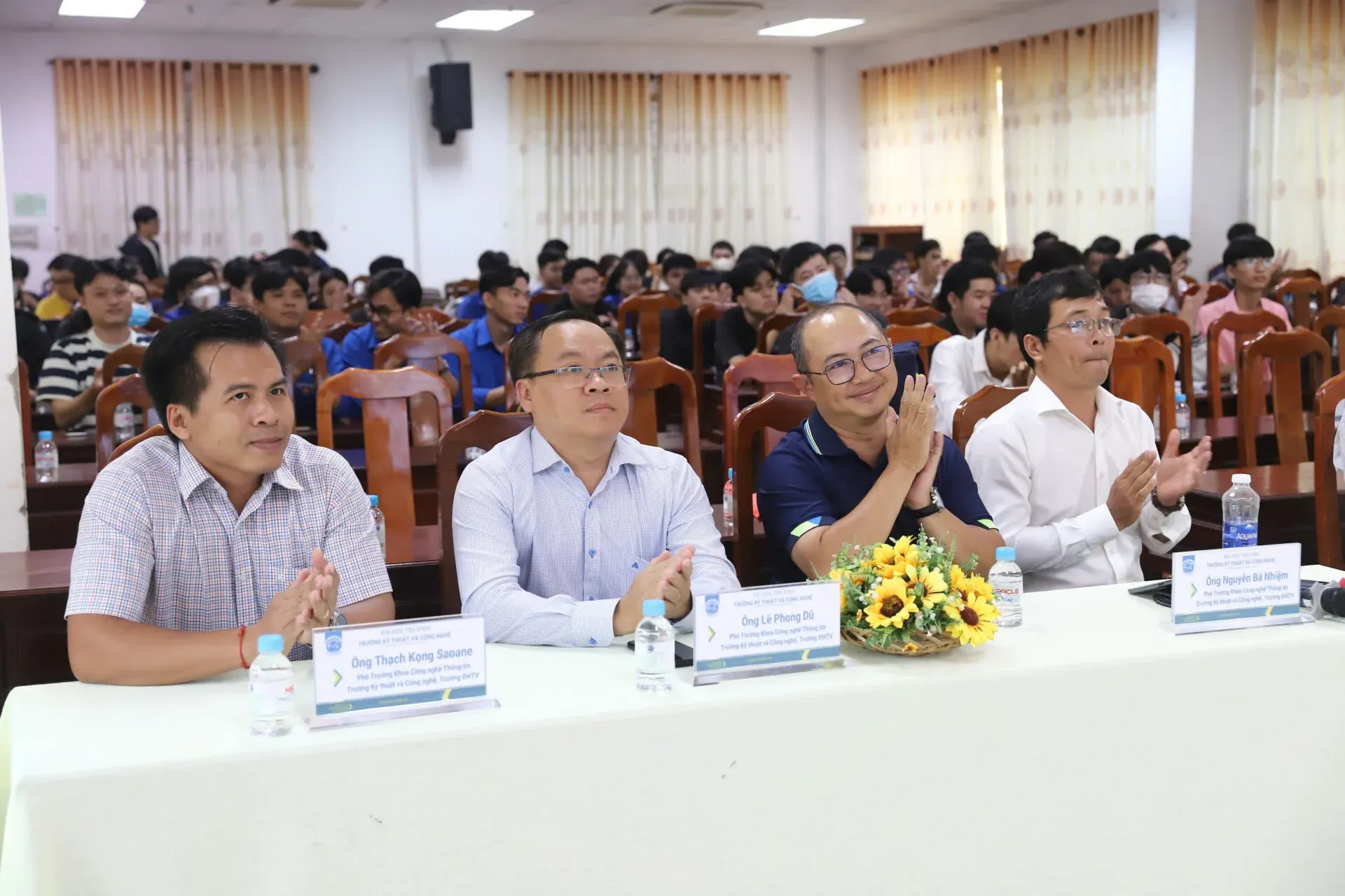 Về phía Đại học Trà Vinh, tham dự chương trình có TS. Võ Phước Hưng, Hiệu trưởng Trường Kỹ thuật và Công nghệ; TS. Nguyễn Bảo Ân, Phó Viện trưởng Viện Phát triển Nguồn lực; TS. Nguyễn Nhứt Lam, Giám đốc Trung tâm AI, Trưởng khoa Công nghệ thông tin; ThS. Nguyễn Bá Nhiệm; ThS. Lê Phong Dũ; TS. Thạch Kọng Saoane, Phó Trưởng khoa Công nghệ thông tin và đông đảo sinh viên ngành Công nghệ thông tin khóa 2022, 2023.
