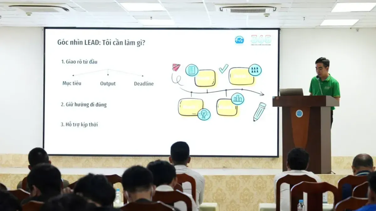 Trong chương trình, các diễn giả đến từ Công ty Cổ phần Hệ sinh thái 365 mang đến cho sinh viên ngành Công nghệ thông tin nhiều góc nhìn thực tiễn, vai trò của lập trình viên, leader và người quản lý dự án trong môi trường doanh nghiệp. Nội dung tập trung làm rõ quy trình tiếp cận bài toán hoặc module, nhấn mạnh việc hiểu đúng yêu cầu, xác định mục tiêu, đối tượng sử dụng và tiêu chí hoàn thành; đồng thời đề cao tinh thần chủ động, giao tiếp và phối hợp trong quá trình làm việc. Bên cạnh đó, các diễn giả cũng chia sẻ về vai trò của quản lý dự án trong việc lập kế hoạch, điều phối nguồn lực, theo dõi tiến độ và quản lý rủi ro nhằm đảm bảo dự án đạt hiệu quả. Đặc biệt, các xu hướng mới như Vibe Coding và Agentic AI, cho thấy sự thay đổi mạnh mẽ trong cách phát triển phần mềm cũng như yêu cầu của thị trường lao động trong kỷ nguyên trí tuệ nhân tạo.